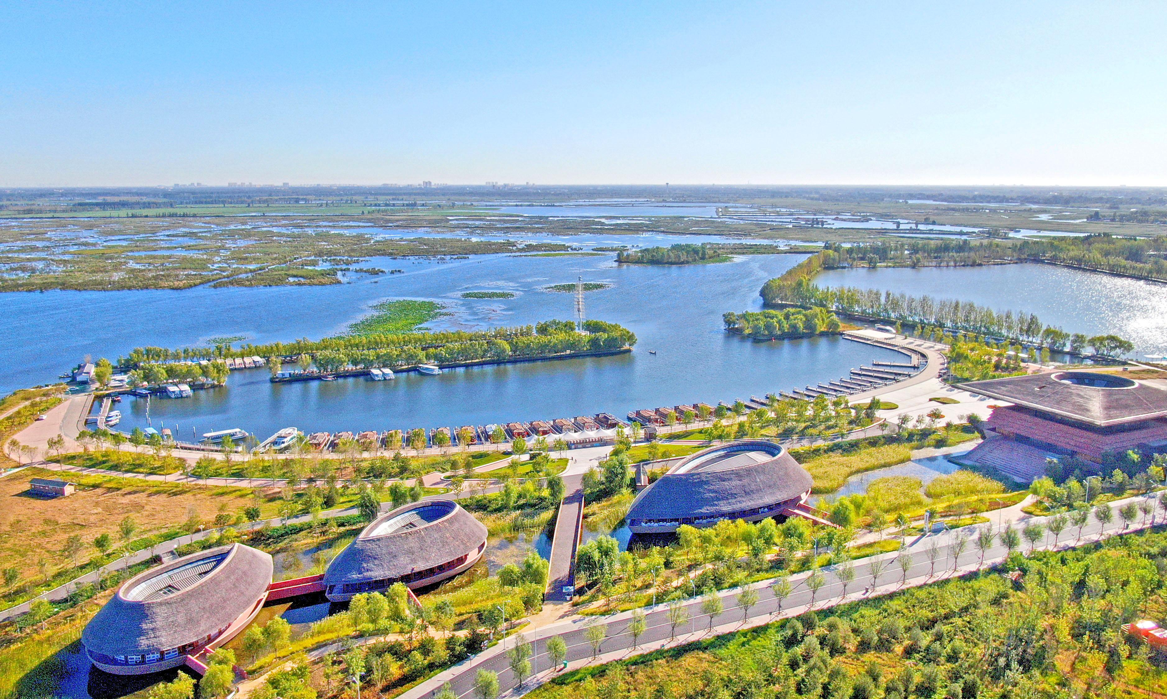 清晨的白洋淀,碧空如洗。荷叶在微风中轻轻摇曳,游船划过澄澈的水面,留下道道涟漪。
